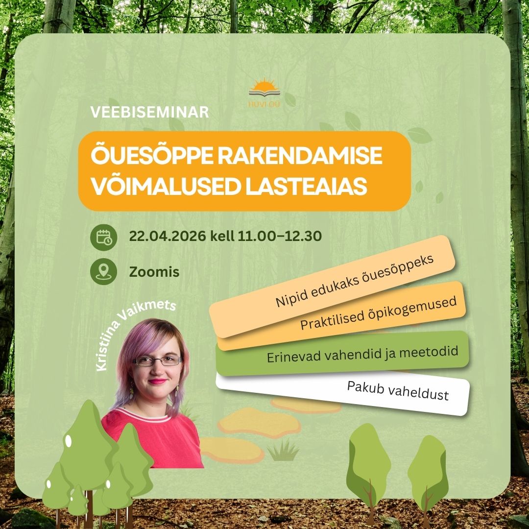 Õuesõppe võimalused lasteaias – praktiline ja inspireeriv koolitus! 22. aprill 2026. Veebikoolitus.